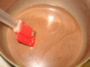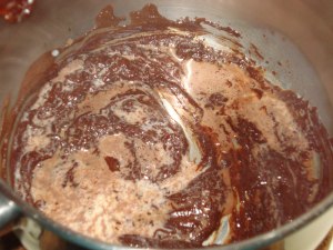 Hot Chocolate must be tempered when making the drink so that pieces of chocolate do not coagulate. Add a small amount of milk and stir.