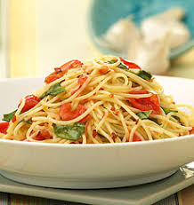 Meanwhile, place skillet on medium high heat. Add oil, garlic, tomatoes, (capers and olives) salt and sepper.  Allow to simmer uncovered for 5 minutes.